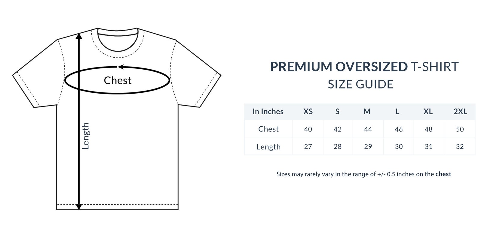 Sizes may rarely vary in the range of +/- 0.5 inches on the chest