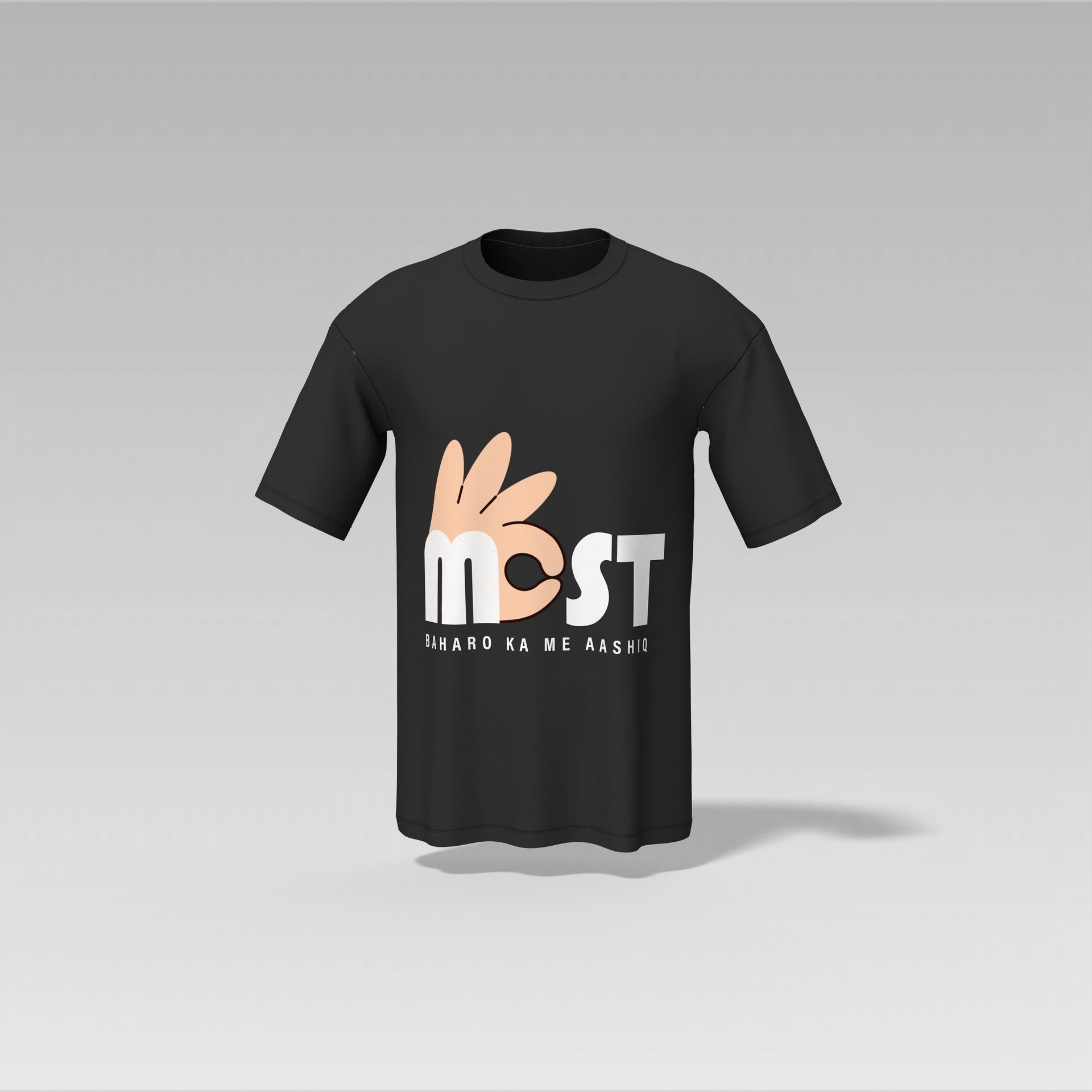 This white tee features the word "Mast" creatively designed with a quirky hand gesture illustration and the iconic phrase “Baharon Ka Me Aashiq” printed below – capturing that effortless, filmi flirt energy. It’s cheeky, cool, and made for the hopeless romantic in every 90s heart.